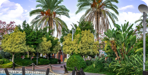 Официальное название — парк Абдурахмана. Живописный прибрежный оазис с широкими аллеями, цветочными клумбами, лужайками, фонтанами и деревянными мостиками.