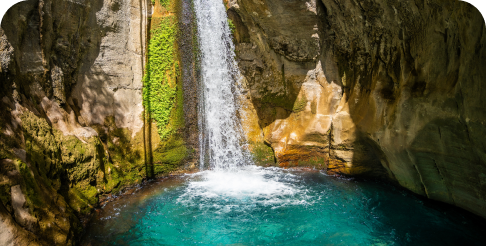 В 40‑50 км от Аланьи, рядом с одноименной деревней. Здесь вас ждут впечатляющие виды со скал, водопады цвета аквамарин и кристальные озера. Несмотря на популярность у туристов, место сохраняет атмосферу заповедного края без каких‑либо следов цивилизации.