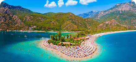 Жемчужина Турции, где бирюзовая лагуна сливается с небом, а белый песок обрамлен величественными горами. Эта визитная карточка Фетхие входит в топ самых фотографируемых пляжей мира